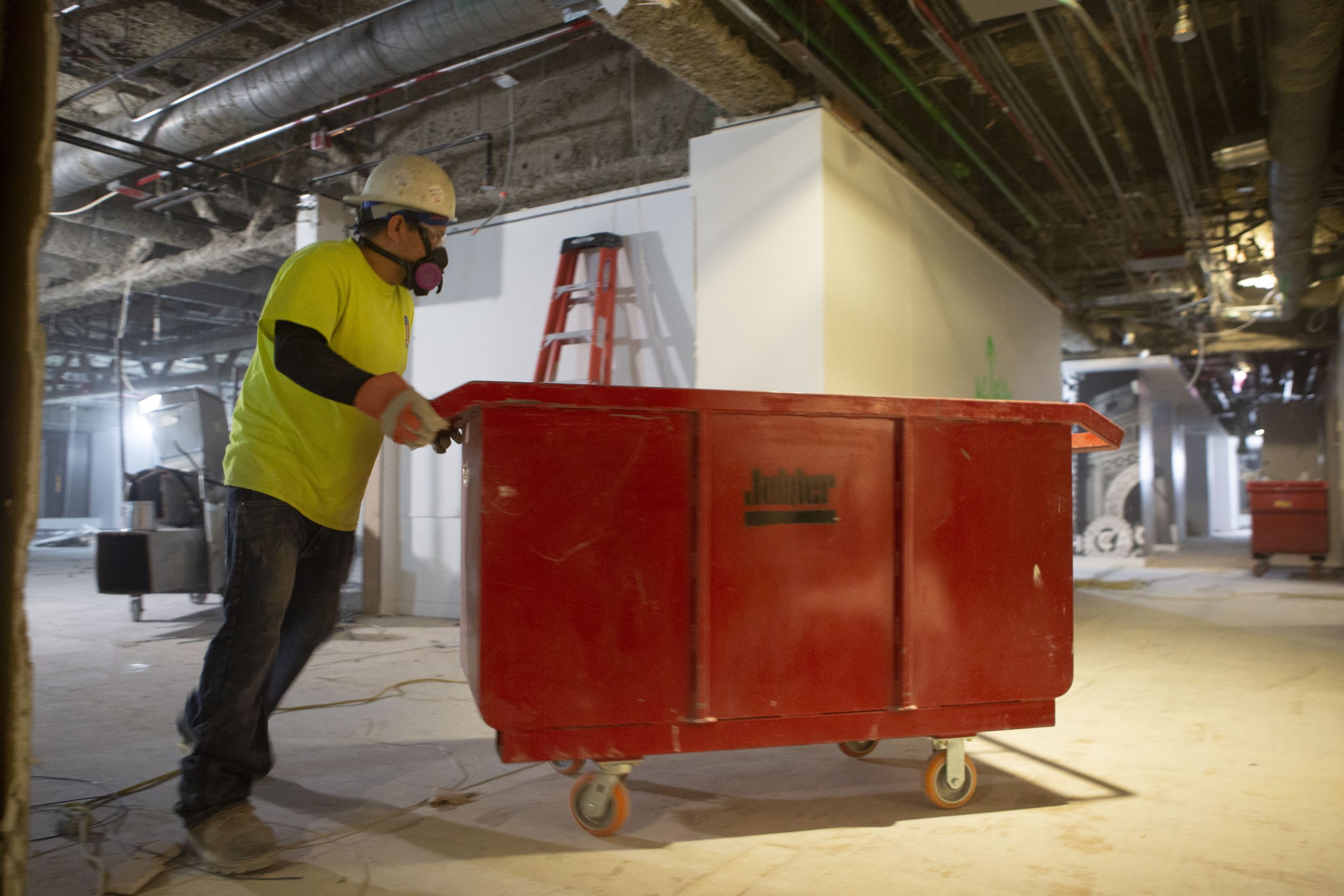 The Xtreme Duty Demolition Cart is a robust tool with a 1 cubic yard capacity struck, weighing 300 pounds with a load capacity of 3,200 pounds. Each cart is stackable for efficient transportation and features full-length fork pockets, making it perfect for demolition and material transport. This tool is ideal for moving large amounts of debris or materials quickly and efficiently on construction sites.